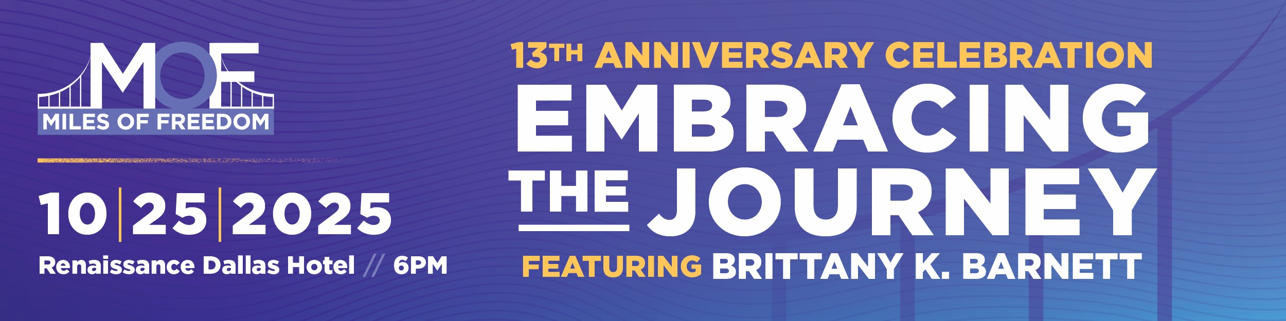 Purchase tickets to Miles of Freedom’s 13th Year Celebration on October 25, 2025, at the Renaissance Dallas Hotel.